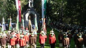 Musik und Schützen versammelten sich am Sonntag, den 21. September 2014 auf dem Hauptplatz vor der Pfarrkirche zum „Hl. Laurentius“, wo Leo Hochgruber, Hauptmann der örtlichen Schützenkompanie, die angetretenen Formationen dem Bürgermeister Helmut Gräber meldete. Um 10.-Uhr Vormittags marschierte der farbenfrohe Festzug durch den beflaggten Markt hinunter zur gepflegten Friedhofs-Anlage im Klosterwald.