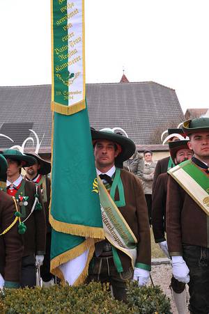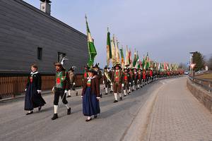 - Christian Hochgruber trägt die Fahne der Michelsburger Schützenkompanie