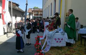 - Pfarrer Bachmann bei der Segnung der neuen Fahne